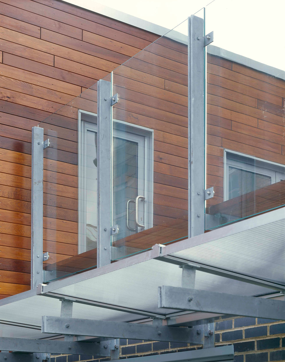 The building is formed of 3 distinctive volumes that differentiate the key functions of the Children's Centre - the reception and baby room (0-2 years) to the front of the site; the nursery rooms and sensory play (2-5 years) which connect with the existing nursery building; and the consultation rooms and multi-use community space which formed the 1st floor timber cedar clad box. An external courtyard and roof terrace provide secure outdoor play space serving each of the main volumes. Green roofs provide a 4th elevation visible from the upper floors of the existing Primary School.